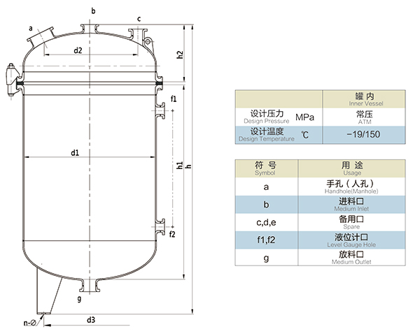 K50L-K200L開式搪玻璃貯罐(開式搪玻璃儲(chǔ)罐)設(shè)計(jì)圖紙及參數(shù)如下所示: