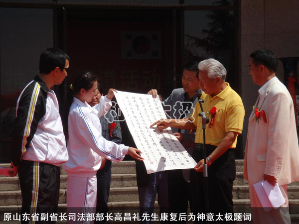 原山東省副省長(zhǎng)司法部部長(zhǎng)高昌禮先生康復(fù)后為神意太極題詞