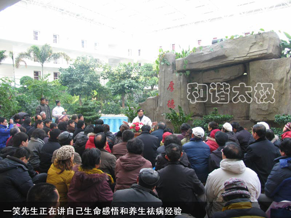 一笑先生正在講自己生命感悟和養(yǎng)生祛病經(jīng)驗(yàn)
