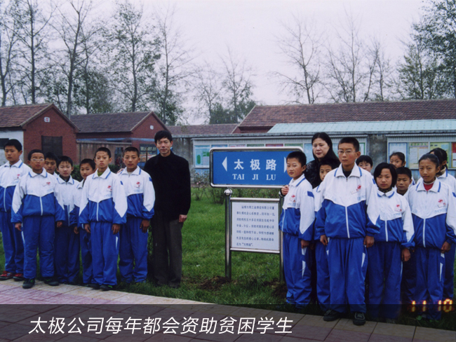 太極公司從十幾年前就開始幫助他人,長(zhǎng)年贊助幾十名學(xué)生上學(xué),慰問養(yǎng)老院,救濟(jì)貧困戶,僅去年就付出50余萬元贊助過一百余人,為社會(huì)的和諧做出了一份貢獻(xiàn)。