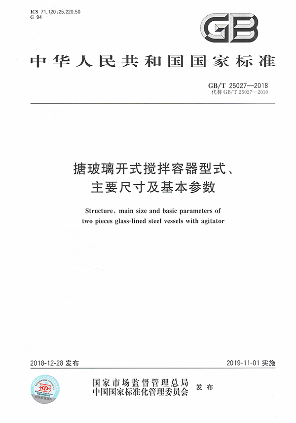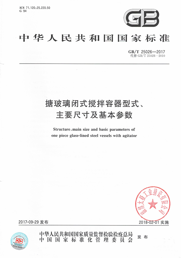 起草制定《搪玻璃閉式攪拌容器型式、主要尺寸及基本參數(shù)》行業(yè)國(guó)家標(biāo)準(zhǔn)