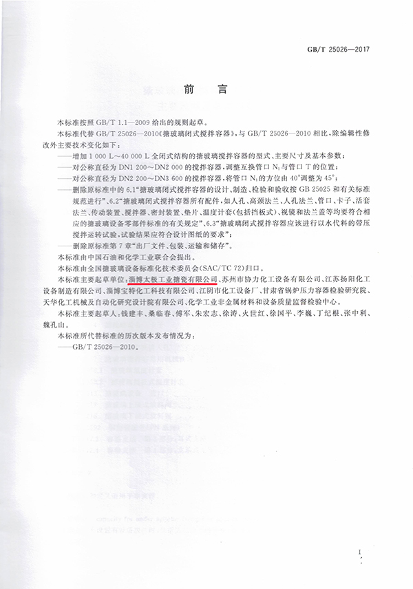 淄博太極以第一單位身份參與制定《搪玻璃閉式攪拌容器》、《搪玻璃開式攪拌容器》《搪玻璃設(shè)備技術(shù)條件》3個(gè)國(guó)家標(biāo)準(zhǔn)