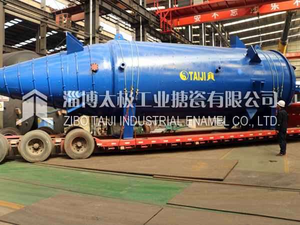 150533666012018年10月10日,兩臺目前國內(nèi)最長的搪玻璃設備搪玻璃錐形反應釜(60000L)在太極制造完畢,并順利圓滿裝車運往用戶基地。根據(jù)技術(shù)部提供的參數(shù),該設備長度為13.8米,是目前國內(nèi)最長的搪玻璃設備
