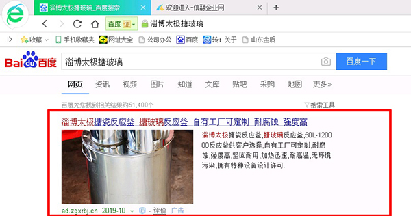 其中一處搜索我公司名稱,竟出現(xiàn)帶有我公司名稱字樣的廣告,可進(jìn)入的網(wǎng)頁里的免費電話及咨詢客服卻是您好,歡迎致電江蘇****有限公司……聽到這些我們非常驚訝!因為我公司是從未做過上述廣告的,對方介紹自己名叫倪*紅,電話為:13801475***,當(dāng)問及為什么通過網(wǎng)絡(luò)搜索“淄博太極搪玻璃設(shè)備”,會聯(lián)系到他時,對方說網(wǎng)絡(luò)就是這樣的……并聲稱他們是江蘇**設(shè)備公司的……太極的設(shè)備太貴了……等惡意誹謗的話。